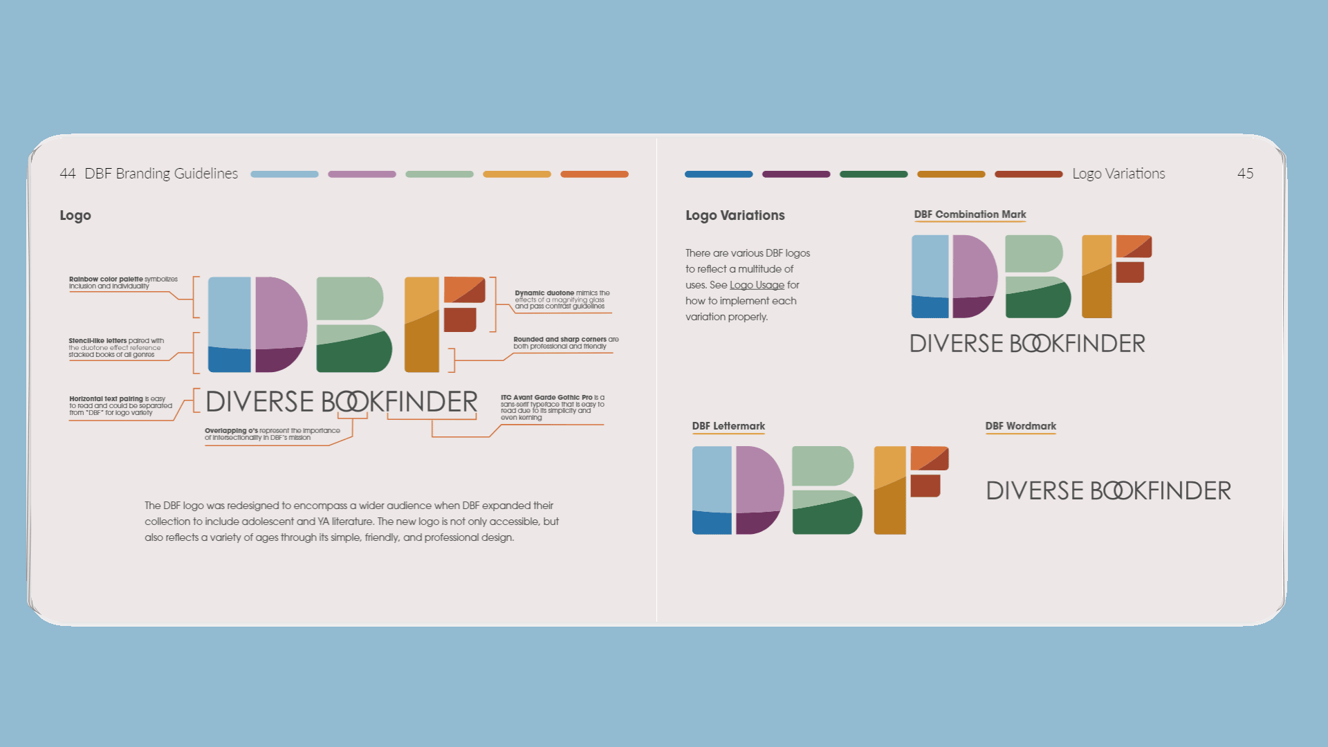 They asked for a team that could redesign their branding to grow with an expanding audience. Diverse BookFinder was undergoing an initiative to expand their audience to middle-schoolers and high-schoolers. They required a full rebrand to capture this friendly but professional identity. I worked with three designers and five stakeholders to create a full brand identity and 70-page branding guideline.