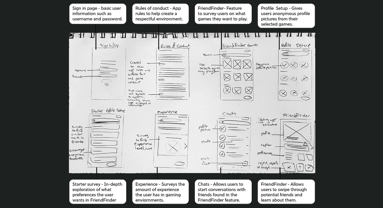 I imagined an app that would create an easy, inviting interface that allows users of any gender or experience level to embrace online gaming without feeling alone or judged.