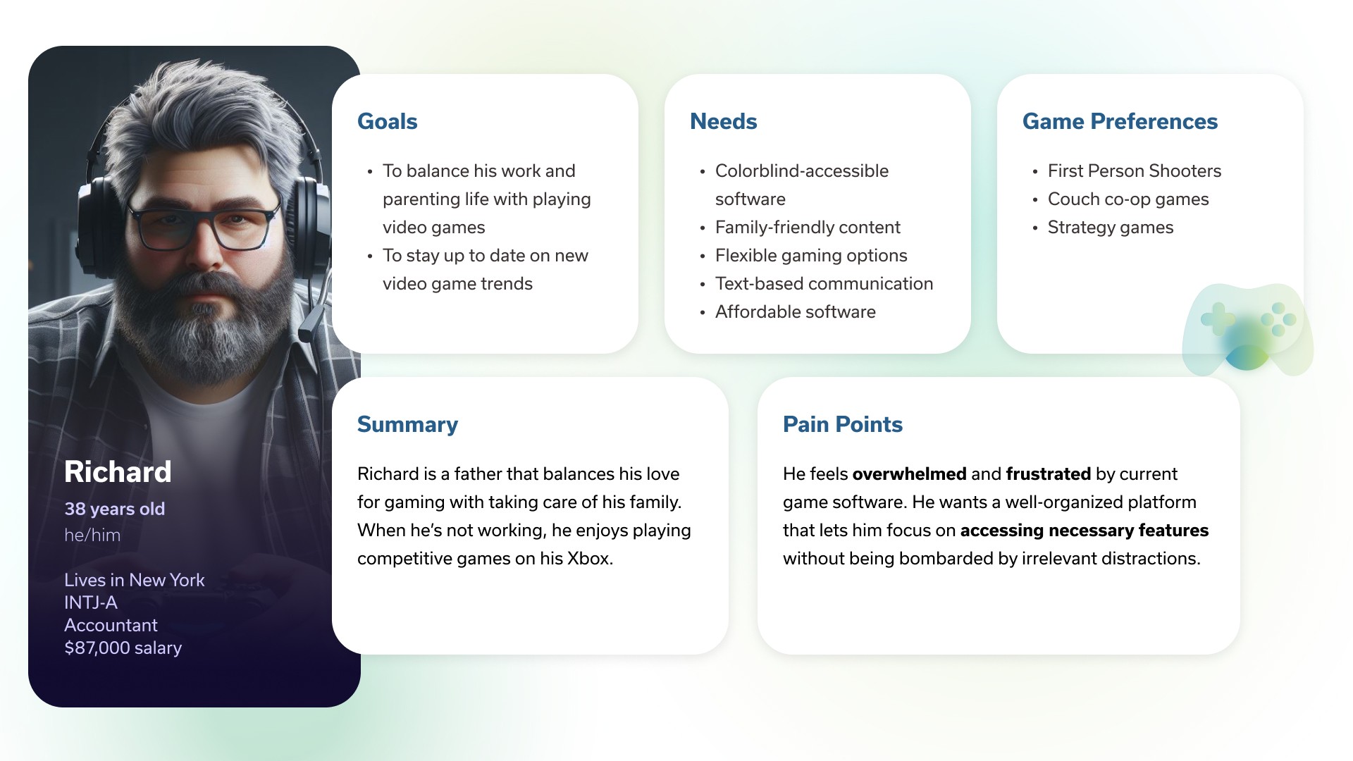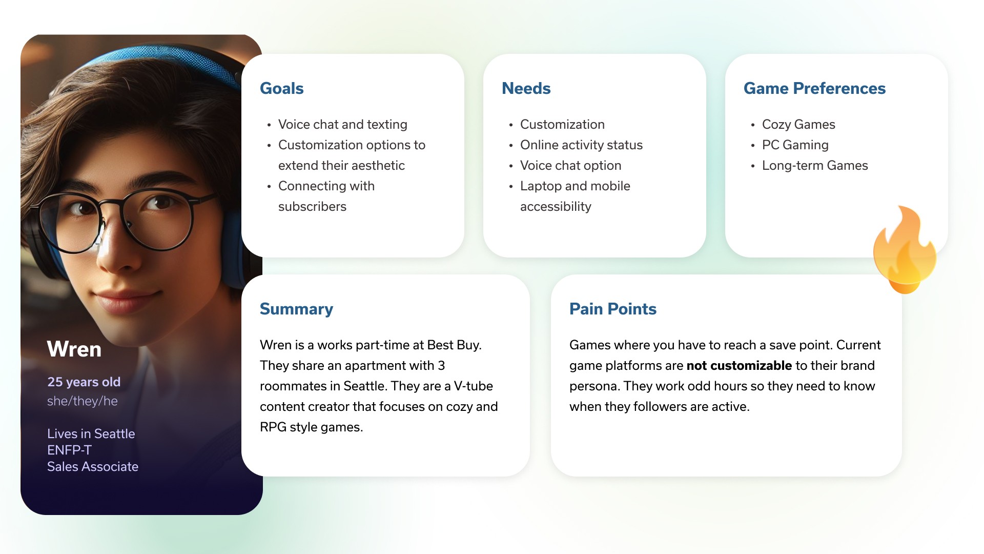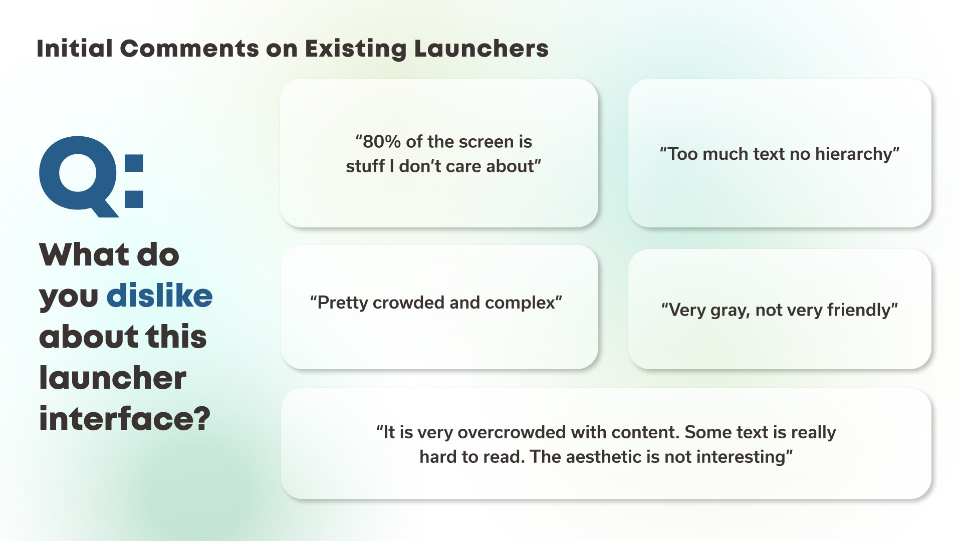 We began our design process with an extensive user research phase where we discussed gaming gender aesthetics, game launcher preferences, and interface pain points with a variety of respondents, both gamers and non-gamers. From this research, we learned that the top five streaming apps suffer from similar pain points: poor visual hierarchy, not meeting user needs, and limited functionality.